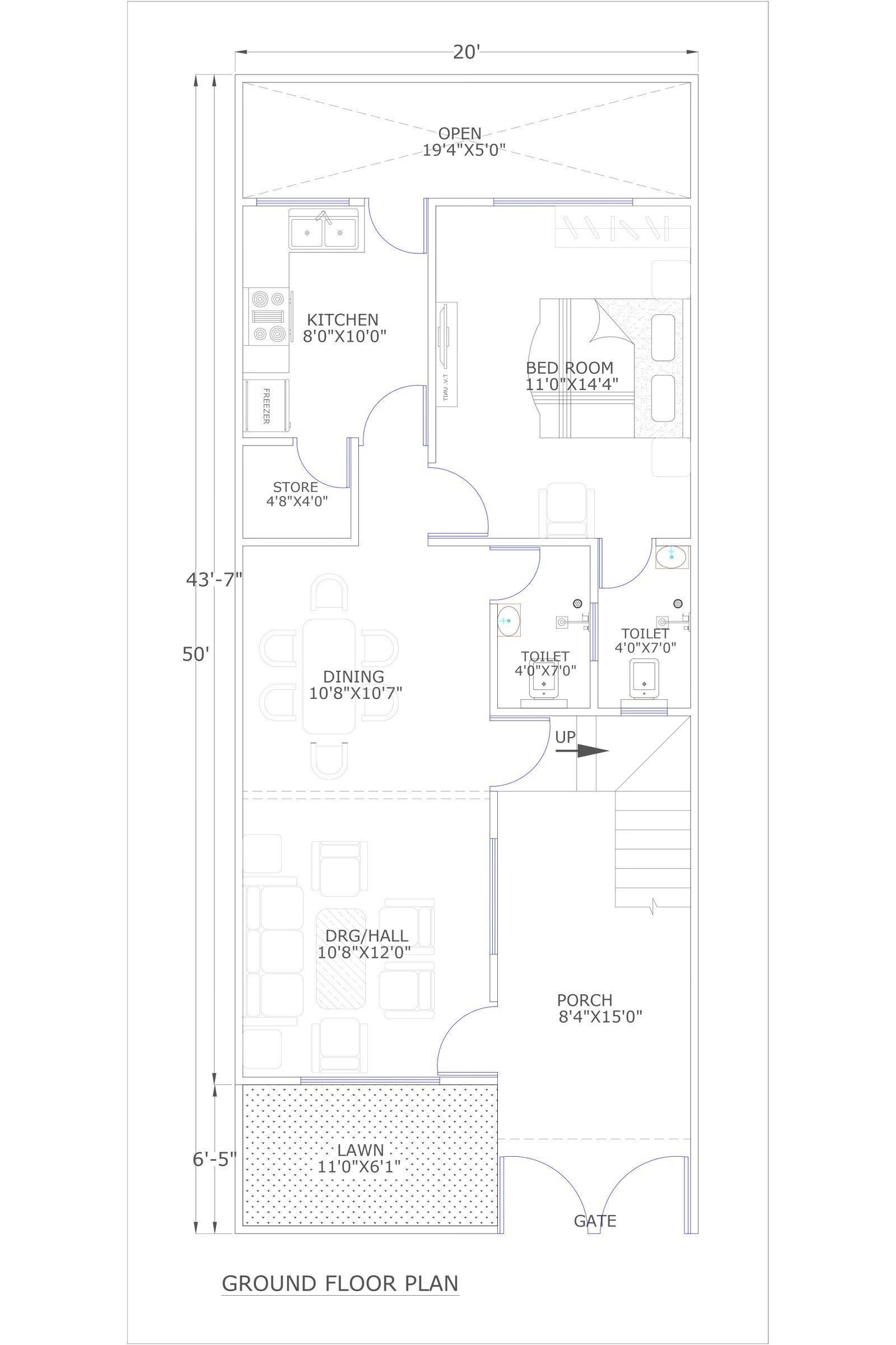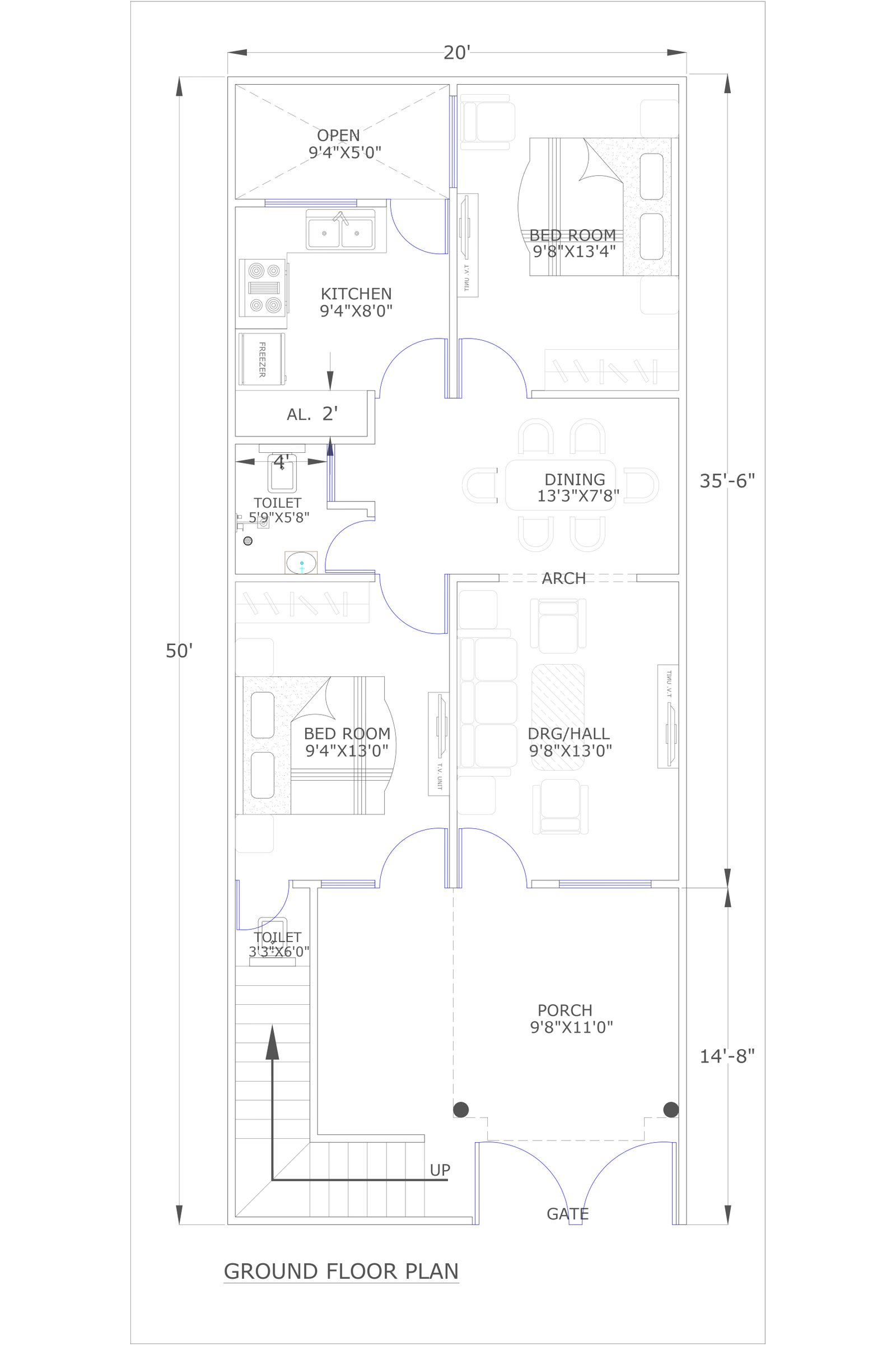 20x50 plan with elevation