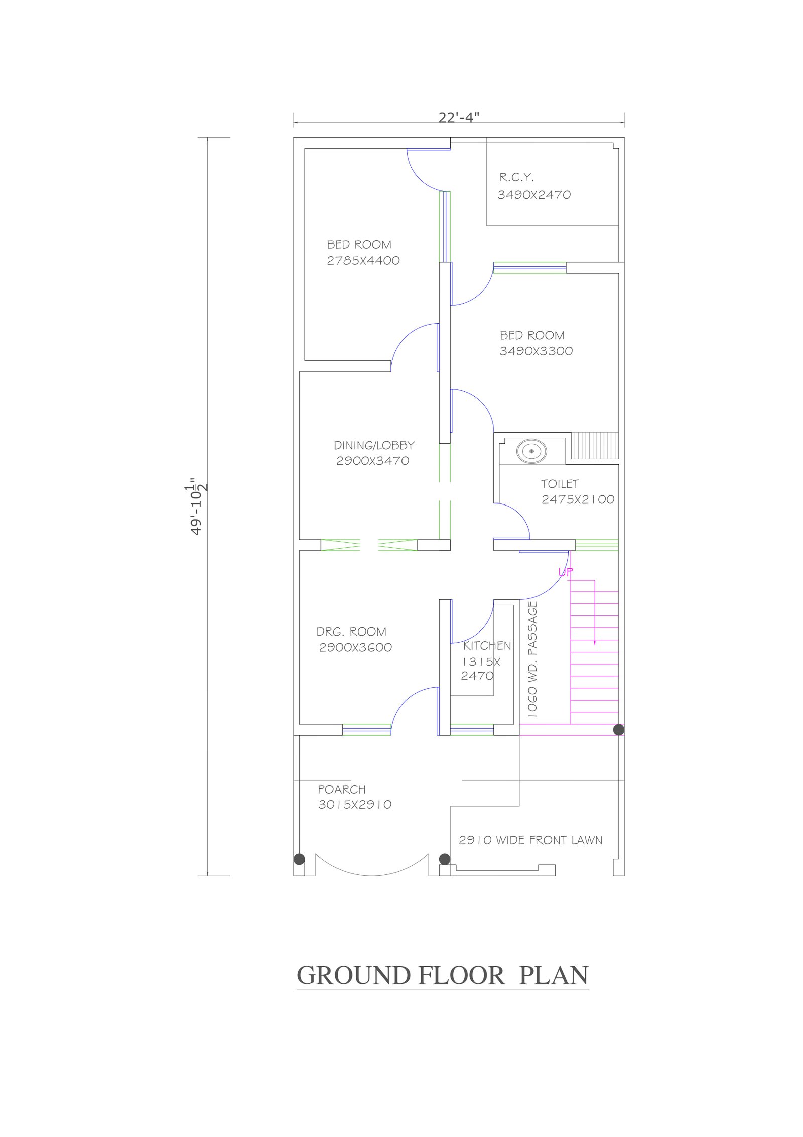 The 1173sqft(130.33 sq yd / 130.33 gaj / 5.21 marla / 108.98 sq m) or 23'x51' house elevation designmay provide details about the layout and construction of each story of the property. features such room and wall measurements, the location of the stairway, the electrical and plumbing systems, the door and window sizes, the layouts of the kitchen and bathroom, the ceiling conditions, the flooring, the structural features, and other unique situations pertaining to the 1173sqft(130.33 sq yd / 130.33 gaj / 5.21 marla / 108.98 sq m) or 23'x51' House Plans are frequently included.