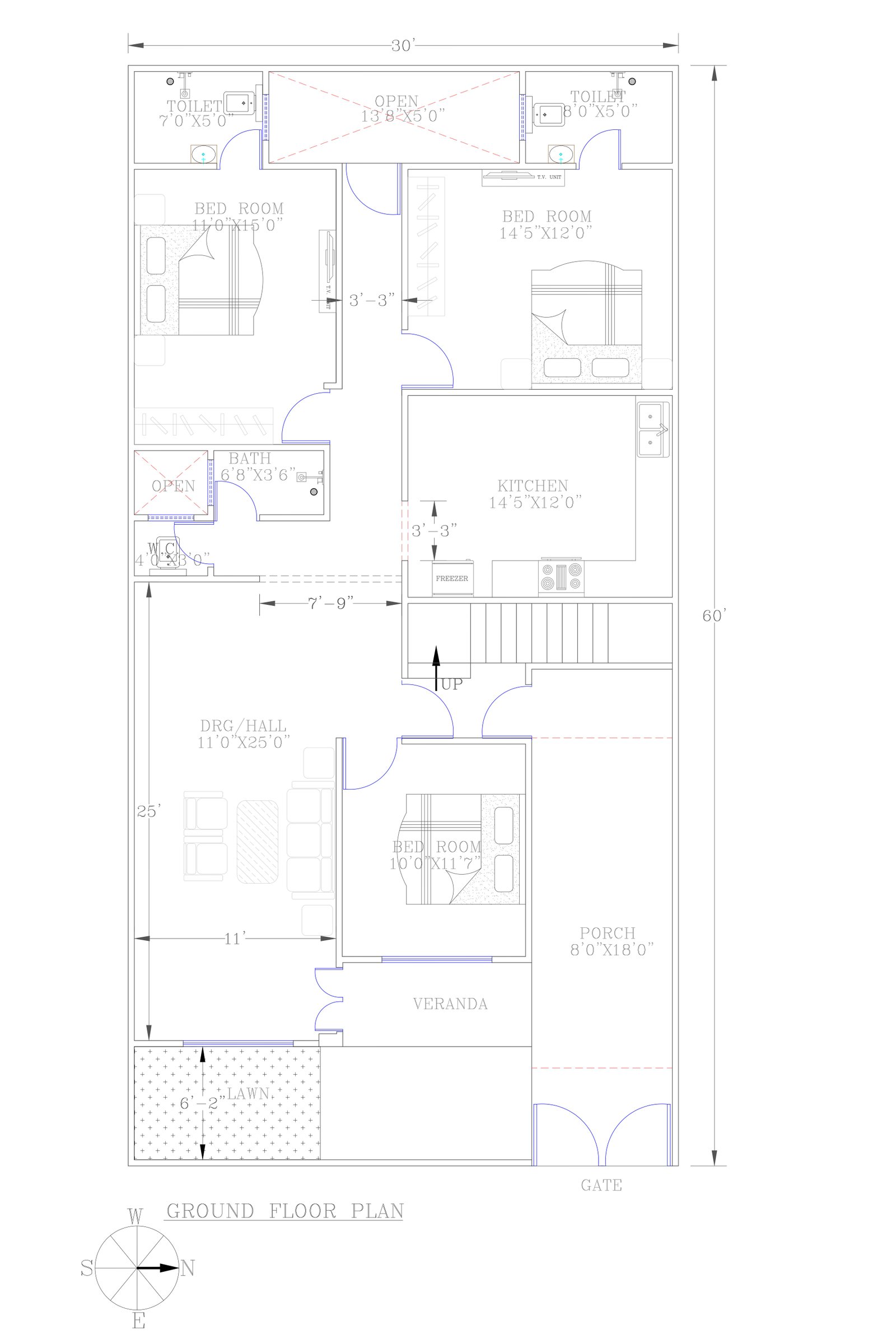 1800sqft(200 sq yd / 200 gaj / 8 marla / 167.23 sq m) or 30'x60' House Plans have three bedrooms and one bathroom. The Best 1800sqft(200 sq yd / 200 gaj / 8 marla / 167.23 sq m) or 30'x60' House Plans are the only place to look if you want the best house plans at the most affordable price. These blueprints are produced by their staff of talented architects and designers, who come from all around the nation. Not only are our many house designs easy to use, but they are also versatile, reasonably priced, and packed with special features. 1800sqft(200 sq yd / 200 gaj / 8 marla / 167.23 sq m) or 30'x60' House Plans also offer a seamless revision process if you need to alter your plans to accommodate your preferences or lifestyle.